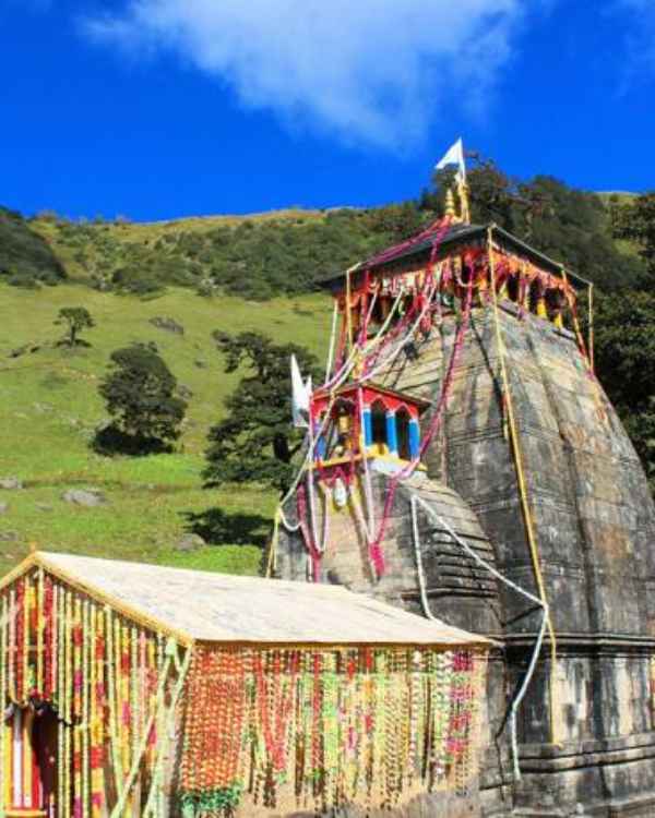 Also known as Madmaheshawar, Lord Shiva’s stomach is worshipped here by devotees. This is one of the best tourist places near Chopta. It is situated at an altitude of 3200 m above sea level. The temple is surrounded by the snow-covered Himalayas from one side and alpine green meadows from the other. You can also see the Neelkanth and Kedarnath peaks from this temple.